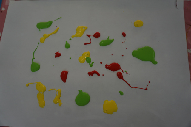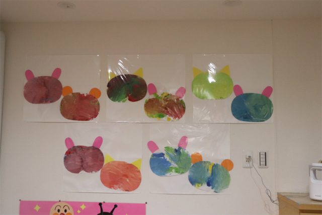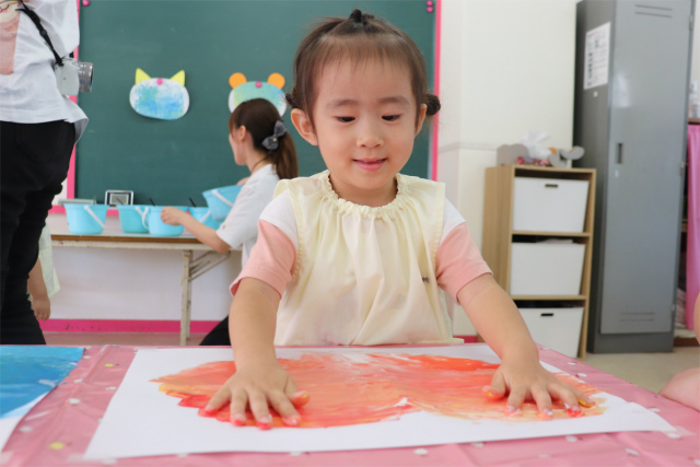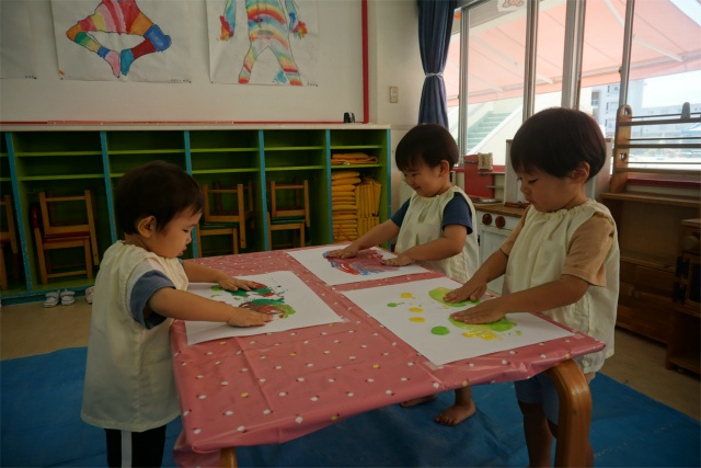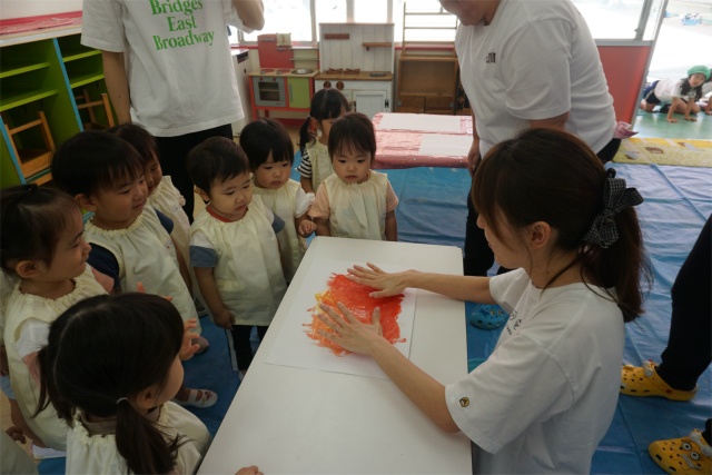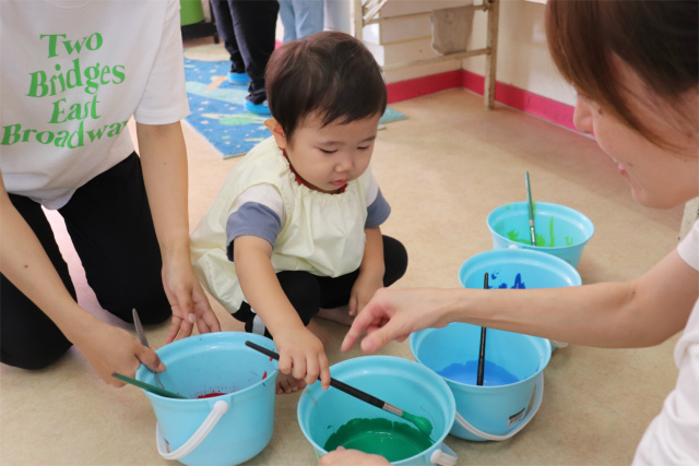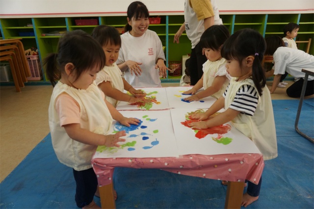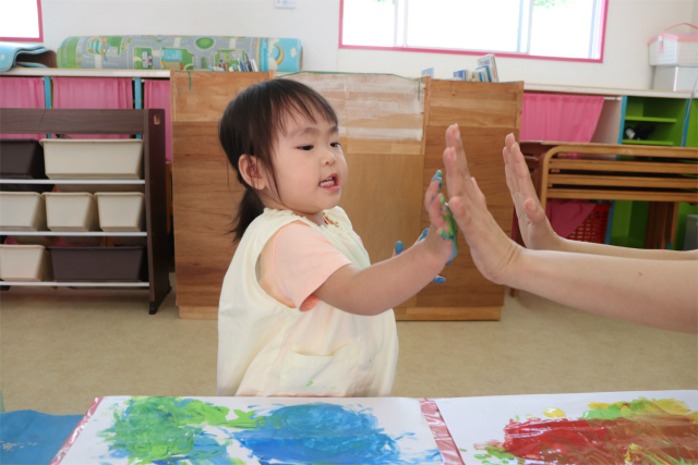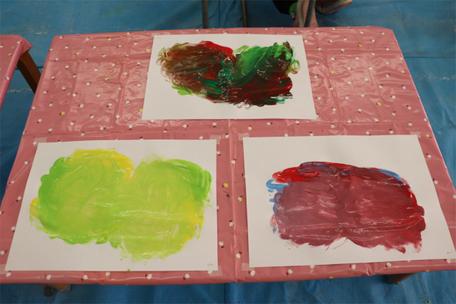 手のひらいっぱいに絵の具をつけて大喜び😀