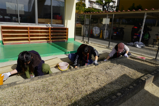 環境美化 Staff 未分類 2025年12月19日 2025年12月19日 年少組の保護者の方が 園内を掃除してくださいました‼ 今回の環境美化では、 溝の下を掃除していただきました😀 子ども達が毎日歩く場所のため、たくさんの砂が… その砂を全部出してくださいました✨ 12月のお忙しい時期に、 ご協力いただきありがとうございました😍